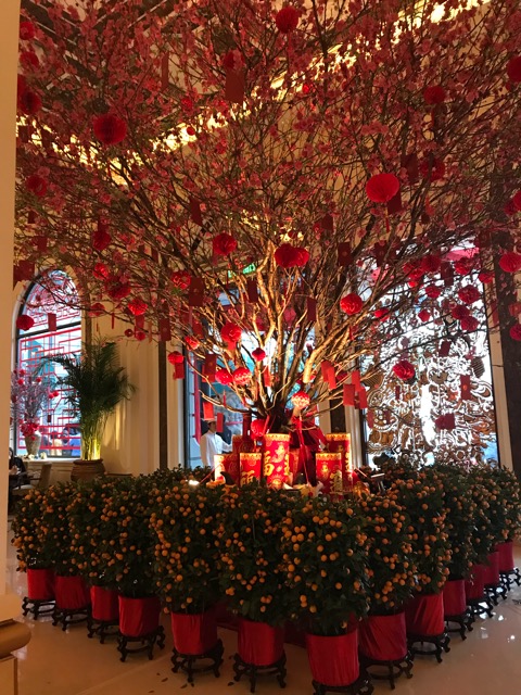 金融街のオフィスビル、高級ショッピングモール、マンションのエントランスに至るまで、旧正月期間中の香港は、街中に紅桃が飾られます![]()